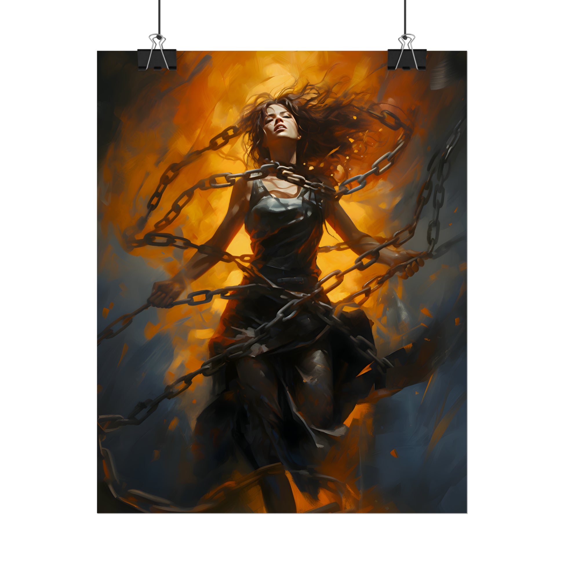 This art print from us is a very strong statement piece that although the meaning behind it is plain to see it can still be left open to interpretation by the viewer. Is the main figure breaking free from the chains of controlling parents? Is she escaping a possessive partner or maybe she is freeing herself from her own constraints and is ready to tackle a new challenge? Whatever the viewer can see in this piece is bound to be a strong message.
