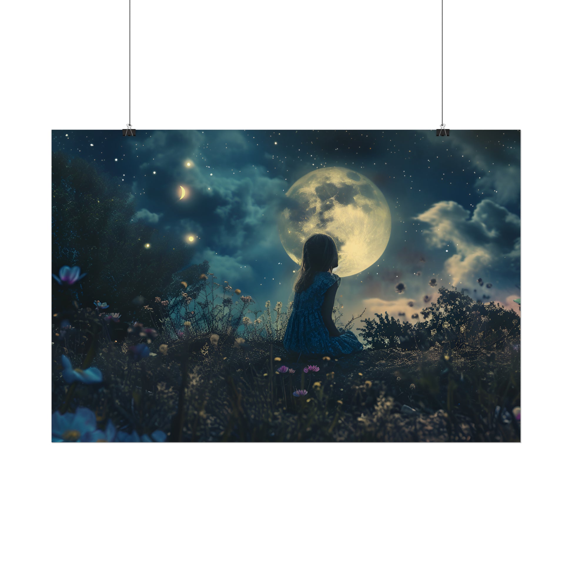 Dreamland Art Print, Starry Sky Poster, Enchanting Fantasy Landscape, Ethereal Painting, Moon and Stars Wall Art, Gift for Children's Bedroom