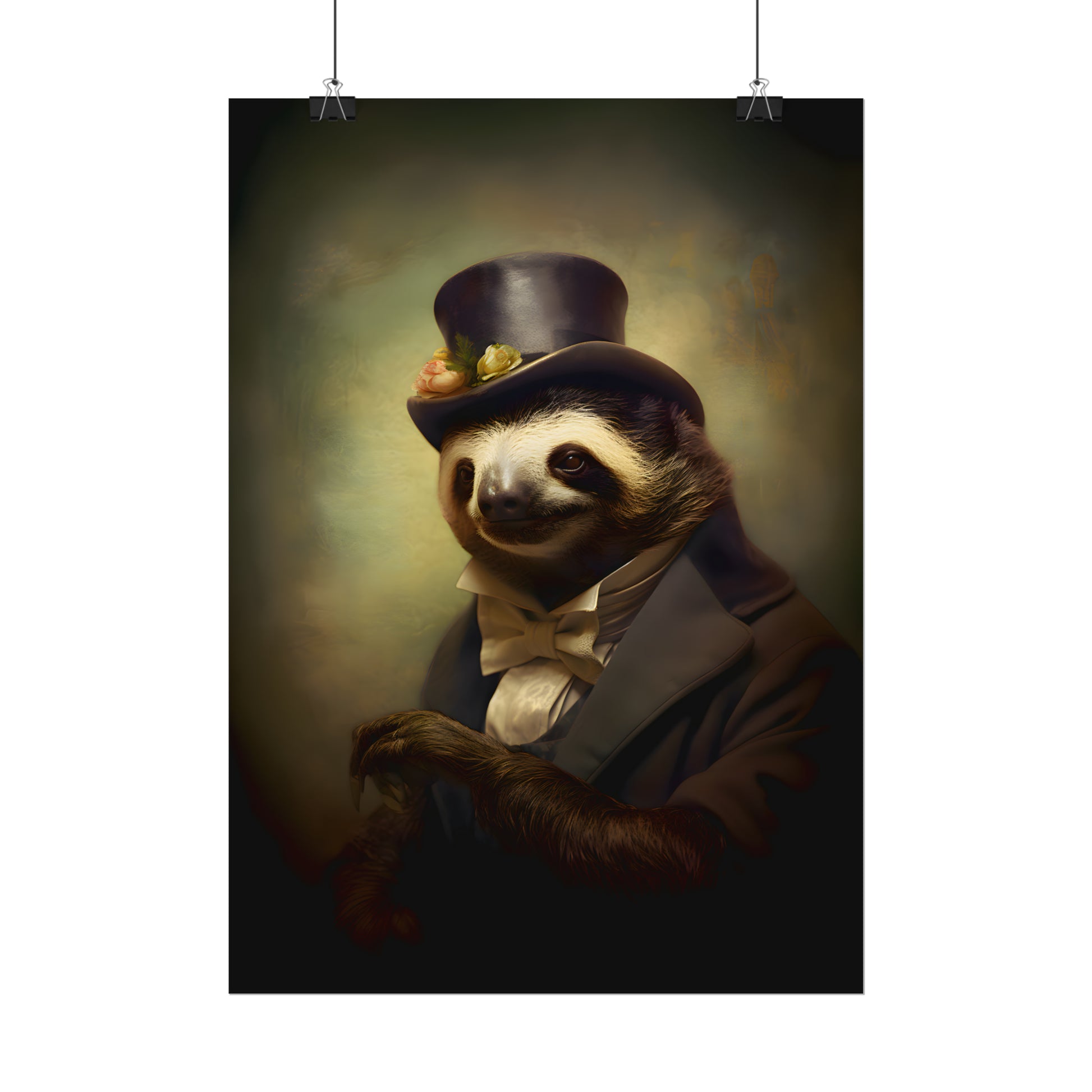 Introducing our "Sloth Gentleman Portrait" print, a captivating piece that seamlessly blends the enigmatic charm of Gothic aesthetics with the refinement of Victorian fashion. This unique artwork is sure to transport you to a bygone era, where elegance and intrigue are perfectly embodied by a rather unexpected character - a distinguished sloth.