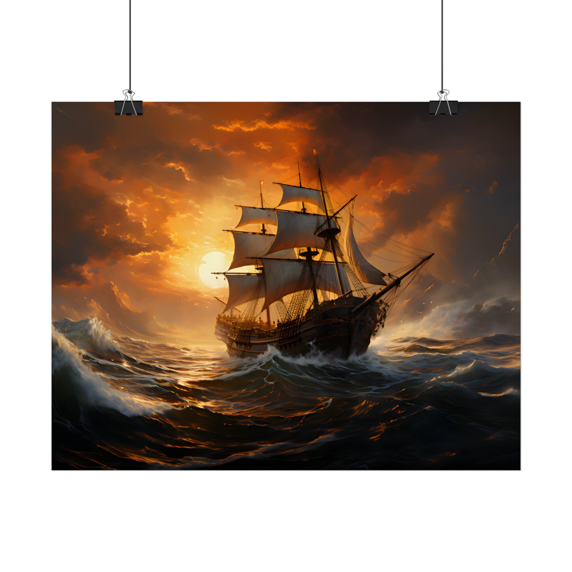 Capturing the essence of wanderlust and the allure of maritime adventures, this exquisite poster is a perfect addition to any nautical-themed decor, whether adorning the walls of your home, office, or maritime-themed establishment. Crafted with skill using high-quality materials, this print ensures long-lasting beauty and intrigue, serving as both a captivating focal point and a timeless conversation piece. Let the allure of the open seas and the golden glow of the setting sun inspire your imagination and elevate your surroundings with this breathtaking work of art.