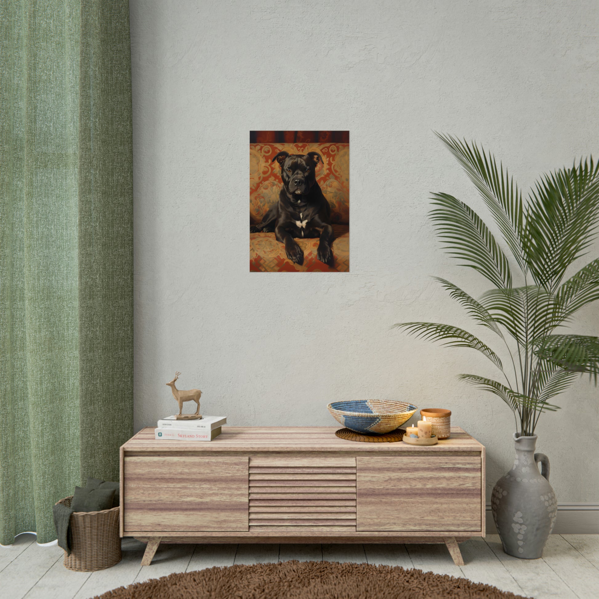 This oil painting print beautifully encapsulates the noble spirit of the Staffordshire Bull Terrier while providing a captivating glimpse into a bygone era. Ideal for dog lovers, art enthusiasts, or anyone seeking to add a touch of timeless charm to their living space, this piece is sure to be a conversation starter and a cherished focal point in any room.